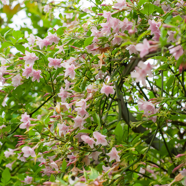 Les plantes grimpantes se distinguent par leur capacité à s'enrouler et à grimper sur des supports verticaux, offrant ainsi une couverture végétale dense et attrayante. Leurs tiges flexibles permettent une adaptation rapide aux supports tels que les treillis et les murs. Certaines espèces, comme le jasmin étoilé, possèdent un feuillage persistant qui assure une verdure constante tout au long de l'année, créant ainsi des écrans naturels contre le vent et les regards indiscrets. Ces plantes sont également appréciées pour leur croissance rapide. Les variétés telles que le jasmin étoilé ou le faux jasmin peuvent atteindre leur pleine taille en quelques années seulement, vous permettant de créer des espaces verts luxuriants sans attendre.La Floraison et la Diversité des Couleurs